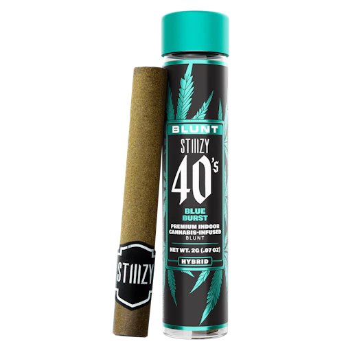 Stiiizy 40s blunts are rolled with 100% tobacco free, kief dusted hemp wraps, secured tightly around a glass tip. We’ve packed each infused blunt with high quality indoor flower so that every inhale is just as good as every exhale. Stiiizy 40s Blunts are reinventing the way you get high by being the first to introduce 40%+ THC potency with live resin infusion. Pass the blunt. BLUE BURST / HYBRID Taste: Blue Raspberry Description: Named for its delicious and powerful flavor, our Blue Burst 40s are known for its blue raspberry flavor with hints of citrus on every exhale. Blue Burst 40s will have you taking flight on a balanced and pleasant cerebral high. Feeling: Relaxed, Uplifted, Creative