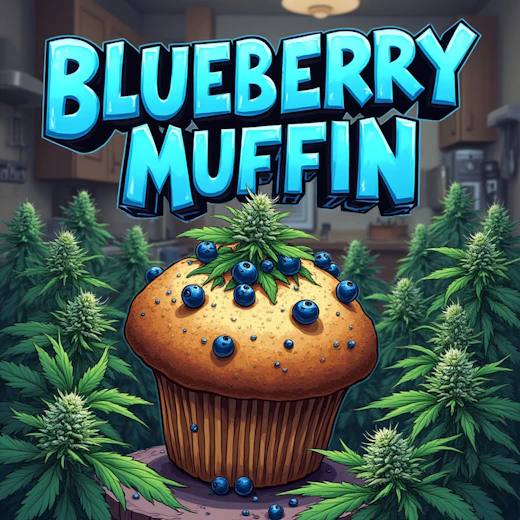 Blueberry Muffin, also known as the plural “Blueberry Muffins,” is a tasty indica dominant hybrid strain created through crossing the infamous Purple Panty Dropper with the addictive Blueberry strain. The result is a bud that packs lifting effects and an insanely delicious flavor that is said to be just like a fresh blueberry muffin! The smell isn't something to sneeze at either – Blueberry Muffin has a rich frosty aroma of fresh berries and earth with a touch of nutty vanilla that becomes slightly pungent as the nugs are burned.
