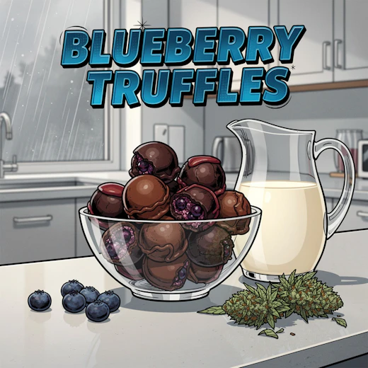 Blueberry Truffle is a hybrid strain known for its rich, sweet blueberry flavor with creamy, dessert-like undertones and subtle earthy notes. It delivers smooth, flavorful smoke with uplifting, euphoric effects that gradually settle into a relaxed, calming body feel. With its bold terpene profile and balanced potency, Blueberry Truffle is a great choice for both daytime and evening use.