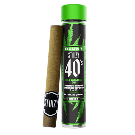 Premium 40's 2G Indoor Blunts STIIIZY 40's blunts are rolled with 100% tobacco free, kief dusted hemp wraps, secured tightly around a glass tip. They've packed each infused blunt with high quality indoor flower so that every inhale is just as good as every exhale. STIIIZY 40's Blunts are reinventing the way you get high by being the first to introduce 40%+ THC potency with live resin infusion. Pass the blunt.