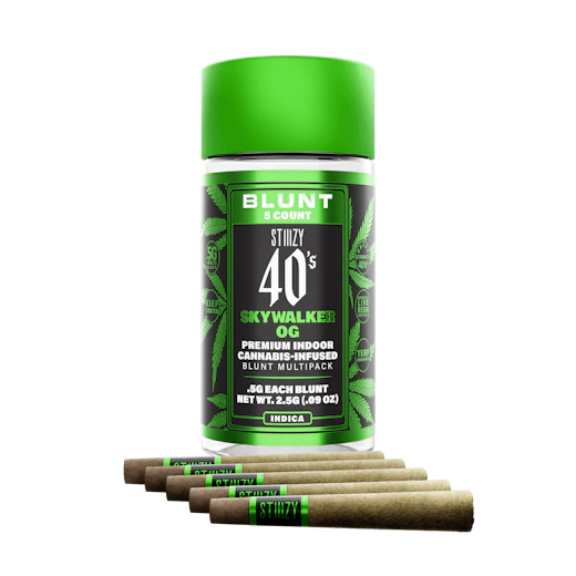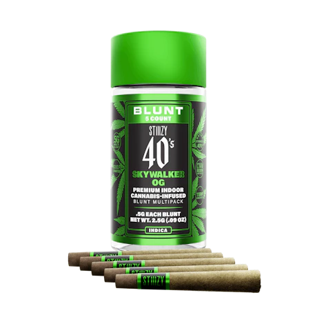 STIIIZY 40’s Mini Blunts Multipack is filled with premium grown STIIIZY cannabis and packed in individual glass vials to maintain freshness and potency. Each 40’s Mini Blunt is rolled with 100% tobacco free, kief dusted hemp wraps which packs a flavorful and potent punch with every exhale, and the tightly secured custom glass tips have been perfected to provide an amazing and consistent burn every time. The STIIIZY 40’s Mini Blunts Multipack is reinventing your high experience by being one of the first to introduce 40% THC and total cannabinoids potency with special live resin infusion. SKYWALKER OG TASTE: Earthy, Pungent, Pine FEELING: Relaxed, Sleepy, Happy DESCRIPTION: With its profound diesel and gassy aroma, Skywalker OG is known for its effects and flavorful aftertaste. With the extra kief coat on our 40’s, Skywalker OG is sure to keep you feeling like you’re floating in space