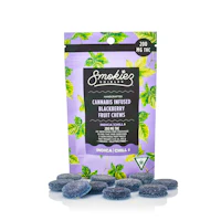 Enhanced with real cannabis terpenes! Smokiez Blackberry Indica Fruit Chews are NOT YOUR AVERAGE FRUIT CHEWS™ ;) These fruit chews taste like fresh blackberries, with a juicy and slightly tangy taste that is reminiscent of ripe berries. These delicious fruit chews are a tasty and discreet way for you to medicate! They are also Vegan, Gluten Free, Dairy-Free, and contain NO High Fructose Corn Syrup. Each of our mouth watering fruit chews contain 20 mg of THC, and made with our high clarity cannabis distillate for great taste. There are 10 pieces per package with 200 mg active THC per package.