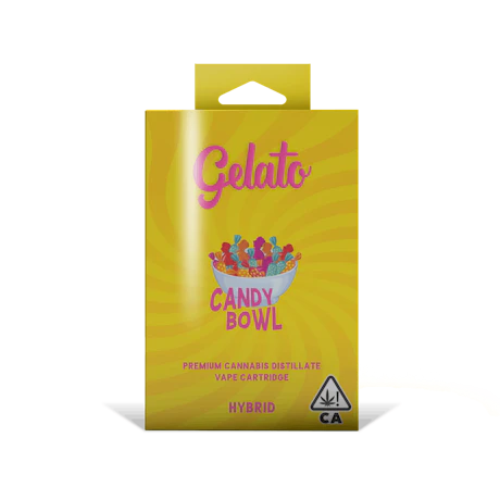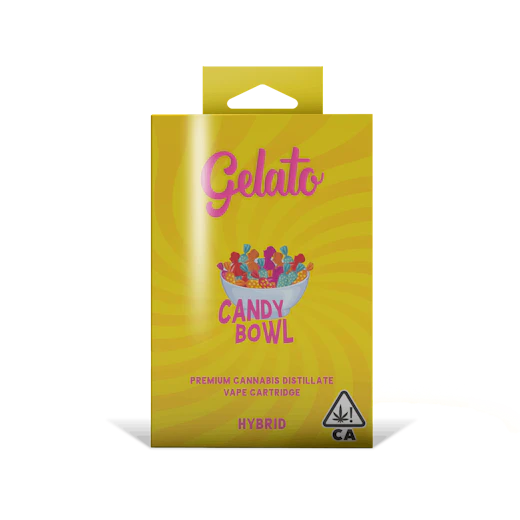 Candy Bowl Hybrid Terpenes of candied berry, thick floral, and sandalwood incense scents, with a gassy undertone. These artisanal products are designed to advance the evolution of the Cannabis industry into mainstream with a bit of colorful fun. The Gelato Brand and Family have a motto, "Do what is right over what is easy!".
