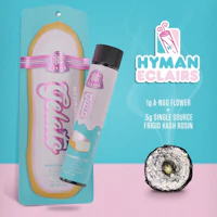 Bubblegum Gelato | 1.5G Éclair Handcraft | HYMAN | REC The new fan favorite, elevated. Each Éclair is handcrafted with 1g of premium flower and infused with 0.5g of cold-cured, single-source rosin. Finished with our signature glass tip and H2O brushed for a perfect seal and an even burn — all for the perfect HY. GET BAKED TWICE 💨 Strain Type: Indica Aromas: Cherry, Fruity, Sweet, Earthy Flavors: Sweet, Citrus, Sugary, Berry Experience: Creative, Happy, Relaxed, Calming
