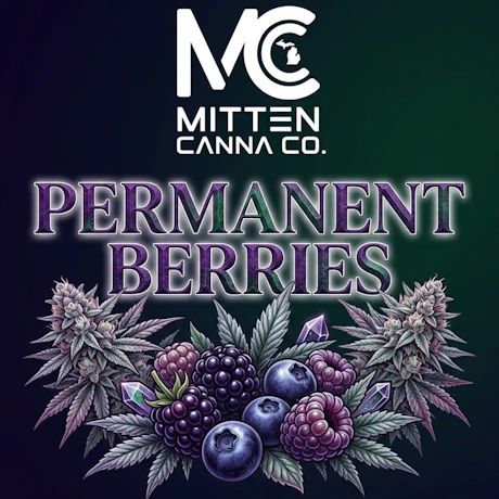 Permanent Berries is a hybrid strain known for its sweet, berry-forward flavor with hints of cream and light gas undertones. It delivers uplifting, euphoric effects that boost mood and creativity before easing into a smooth, relaxed body feel. With its bold fruit profile and balanced potency, Permanent Berries is a solid choice for daytime or evening use.