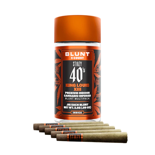 STIIIZY 40’s Mini Blunts Multipack is filled with premium grown STIIIZY cannabis and packed in individual glass vials to maintain freshness and potency. Each 40’s Mini Blunt is rolled with 100% tobacco free, kief dusted hemp wraps which packs a flavorful and potent punch with every exhale, and the tightly secured custom glass tips have been perfected to provide an amazing and consistent burn every time. The STIIIZY 40’s Mini Blunts Multipack is reinventing your high experience by being one of the first to introduce 40% THC and total cannabinoids potency with special live resin infusion. KING LOUIS XIII TASTE: Mango FEELING: Relaxed, Sleepy, Happy DESCRIPTION: Noted for its royal caliber in high THC potency, our King Louis XIII 40’s gives you a bursting mango flavor which coincides with a powerful high that’s sure to keep you feeling like a king.