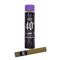 Premium 40's 2G Indoor Blunts STIIIZY 40's blunts are rolled with 100% tobacco free, kief dusted hemp wraps, secured tightly around a glass tip. They've packed each infused blunt with high quality indoor flower so that every inhale is just as good as every exhale. STIIIZY 40's Blunts are reinventing the way you get high by being the first to introduce 40%+ THC potency with live resin infusion. Pass the blunt.