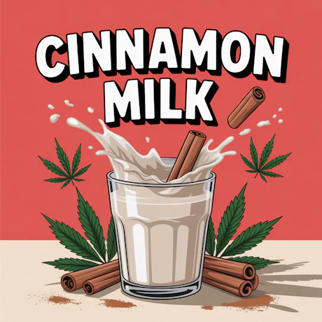 Cinnamon Milk is a hybrid weed strain bred by Cookies and Powerzzzup, and made from a genetic cross of Cereal A La Mode to Sherb Z #1. It expresses that creamy, cinnamon warmth with euphoria to match. Cinnamon Milk also grows into clumpy, royal purple buds with green accents and long orange hairs hidden under a thick trichome frost.