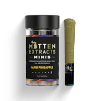 Introducing Mitten Extracts' Infused Prerolls, where premium indoor flower meets the art of infusion. Our prerolls are meticulously crafted with top-tier flower, enhanced with live resin terpenes, high quality cannabis oil, coated in top tier kief resulting in bright new flavors and unparalleled potency. Experience the cooled and refreshing smoke of our luxury ceramic tip cones while perfectly sized for convenience and on-the-go enjoyment. Elevate your ritual with Mitten Extracts' Infused Prerolls - where flavor, potency, and quality unite. Maui Pineapple A tropical delight that transports you to the shores of paradise with its vibrant pineapple aroma and flavor. This sativa-dominant strain evokes a sense of creativity and mental clarity.