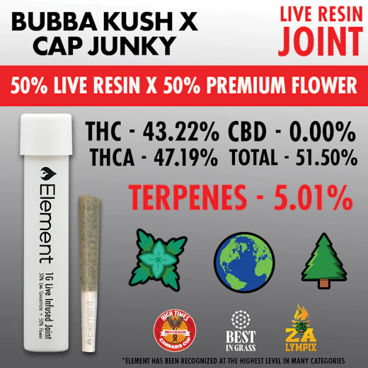 Element x Bud Hub - 1g Live Resin Joint - Bubba Kush x Cap Junky