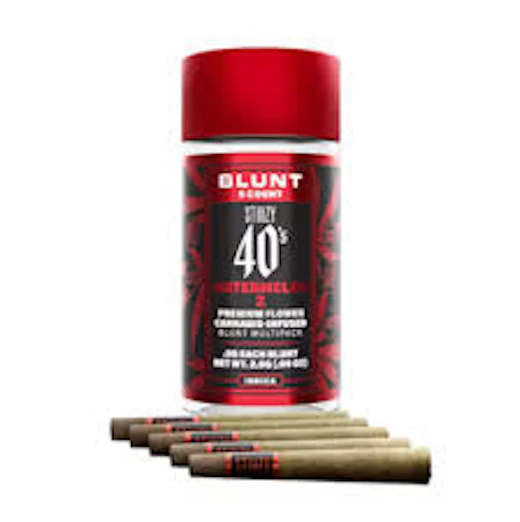 STIIIZY 40’s Mini Blunts Multipack is filled with premium grown STIIIZY cannabis and packed in individual glass vials to maintain freshness and potency. Each 40’s Mini Blunt is rolled with 100% tobacco free, kief dusted hemp wraps which packs a flavorful and potent punch with every exhale, and the tightly secured custom glass tips have been perfected to provide an amazing and consistent burn every time. The STIIIZY 40’s Mini Blunts Multipack is reinventing your high experience by being one of the first to introduce 40% THC and total cannabinoids potency with special live resin infusion. STIIIZY 40's blunts are rolled with 100% tobacco free, kief dusted hemp wraps. We’ve packed each infused blunt with premium, high quality flower so that every inhale is just as good as every exhale. STIIIZY 40's Blunts are reinventing the way you get high by being the introducing unique profile profiles & unmatched potency with live resin infusion. Pass the blunt. WATERMELON Z TASTE: Sweet, Citrus, Berry FEELING: Euphoric, Relaxing, Uplifting DESCRIPTION: This mouthwatering strain is perfect for lazy nights on the couch.