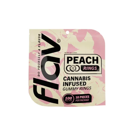 10 Per Package Flav Peach Rings is the fun, fruity cannabis treat you need to make medicating enjoyable. Delicious peach flavors in a sour gummy ring and coated with sugar and infused with 10 or 25mgs per ring. With 10 rings per package, these gummies make it easy and safe to medicate at a level you feel is most comfortable for your medical needs. Get Flav Peach Rings and medicate in a fun, safe way today.
