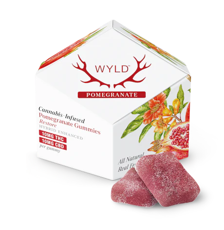 Great for enhancing your equilibrium with CBD and THC, Wyld Pomegranate gummies help restore a sense of balance. Hybrid 10mg THC:10mg CBD per gummy 100mg THC:100mg CBD per container 10 gummies per container